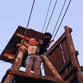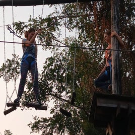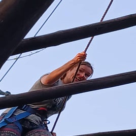 Na alle gekkigheid gingen we van start. Veilig verankerd aan kabel volgde ik Anna, die op rap tempo alle hindernissen overging en het deed overkomen alsof het een makkie was. Als ze dan aan de overkant was, kwam ik stuntelend, gillend en minstens 3 keer zo traag achter haar aan. De High Ropes zijn zo gebouwd, dat het steeds ietsje moeilijker wordt en bij elk nieuwe obstakel dacht ik: “oef hoe ga dit fixen?” Maar uiteindelijk heb ik alles gehaald! En daar was ik stiekem best een beetje trots op 😊
