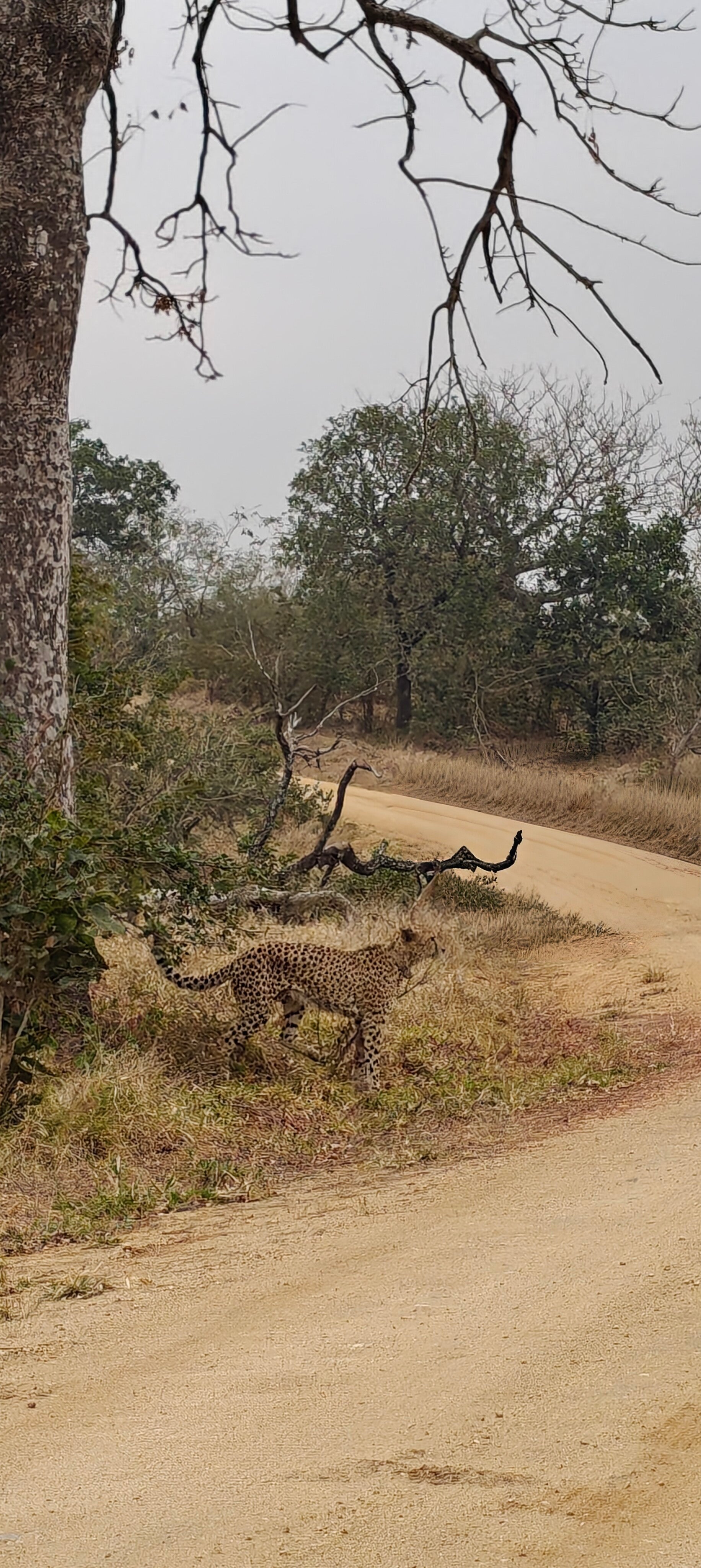 Zij werden vervolgens opgevolgd door een groep van 12 olifanten! We hoorden ook leeuwen en hyena’s, maar we zagen ze niet. Ik hoopte heel erg dat we de volgende dag de leeuwen wel zouden zien en dat onze BIG FIVE, compleet zou zijn. Na een korte nacht, pakte we alles in en vertrokken voor een ochtendtoer… En ja hoor! Direct een groep leeuwen voor onze lens! Wat een cadeau! Maar het kon nog beter! Een vrouw van het park gaf aan dat ze een jachtluipaard had gezien op de weg. We besloten direct te gaan kijken en we waren stom verbaast! Daar lag hij… gewoon prinsheerlijk op de weg te luieren. Als een waar fotomodel draaide hij zich af en toe om, om zijn schoonheid aan iedereen te laten zien.
